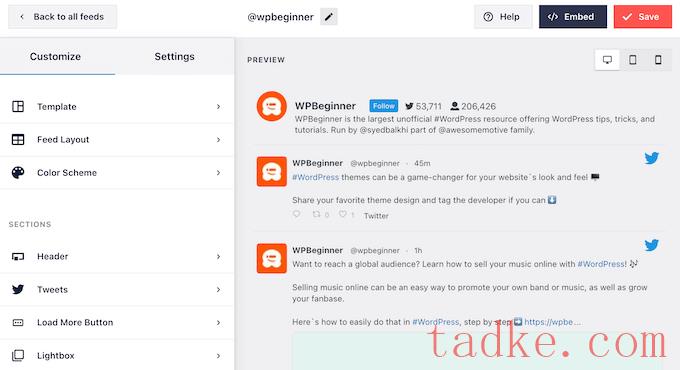 Smash Balloon现在将显示社交媒体订阅源的预览,准备好供您定制。