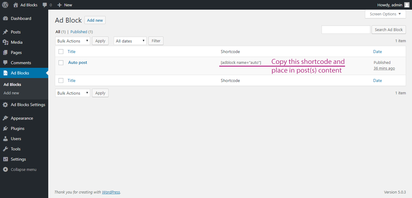 点击下载 广告块 插件描述 这是一个简单的广告工具,允许您使用短代码发布和管理帖子和侧边栏中的广告块小部件。您可以定义包含来自Google AdSense,亚马逊横幅广告等的自定义HTML或广告的广告块。 文档&支持 您可以在 wp-aptools.com 上找到文档以及有关广告块的更多详细信息。如果您无法在任何文档中找到问题的答案,则应查看WordPress.org上的支持论坛。如果您找不到与您的特定问题相关的任何主题,请为其发布新主题。 功能 短代码[adblock name =“your_adblock_name”],用于在任何帖子中插入您的块格登堡或经典编辑器模式,用于编辑广告块内容自动发布:将广告块添加到所选类型的所有帖子中(帖子,页面或任何自定义公共类型)automaticWidget用于在任何小部件区域中发布广告块用于自定义的内容(开发人员) 在插件中可用 通过ajax加载广告在页面上阻止内容,以便在工作日,开始/结束时更好地进行SEOScheduling广告日期,时间跨度,排除日期使用包含/排除规则自动发布基于目标后分类法的其他要求 您可以在 wp-aptools.com找到 Addons 以及有关广告块的更多详细信息。 屏幕截图 安装 上传’ad-blocks’文件夹到‘ / wp-content / plugins /’directory通过WordPressGo到Ad Blocks Settings菜单中的’Plugins’菜单激活Ad Blocks插件,进行主要设置。