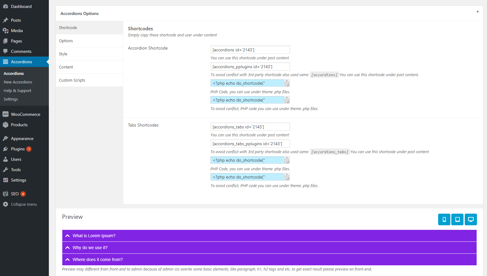 点击下载 折叠式 插件描述 之前手风琴内容创作并不容易,你会非常喜欢它的作品和显示手风琴的内容在您的页面或任何地方通过短代码。 手风琴:http://pickplugins.com 手风琴 – 高级» 现场演示» 支持» 文档» 插件功能 Unlimited Accordion& FAQ.Responsive Design.Use通过Short-Codes.Accordion sorting.WP编辑手风琴/常见问题解答content.Container背景Image.Container背景Color.Hide任何手风琴没有删除.Container Text Align.Font Awesome Icons(添加您自己的图标)。标签选项卡 高级功能 短代码支持内部手风琴内容默认活动手风琴。多级,嵌套手风琴。点击标题滚动顶部。活动鼠标悬停。用于手风琴标题的过滤器和Content.Open/Active accordion by url参数,(例如:yourdomain.com/accordion-page/?id=2)鼠标点击或悬停事件为活动的accordion.Multi Color Header.Icons Custom Color.Icon Position(Left or Right) .Header Custom Padding.Header Custom MarginContent Custom MarginContent Custom PaddingCustom Content.Lazy Load.Tabs Features.Vertical Tabs的背景颜色。 屏幕截图 screenshot-1 screenshot-2 screenshot-3 screenshot-4 安装 作为常规WordPress插件安装。通过WordPress仪表板进行插件设置,找到“ Accordions ”激活它。 […]