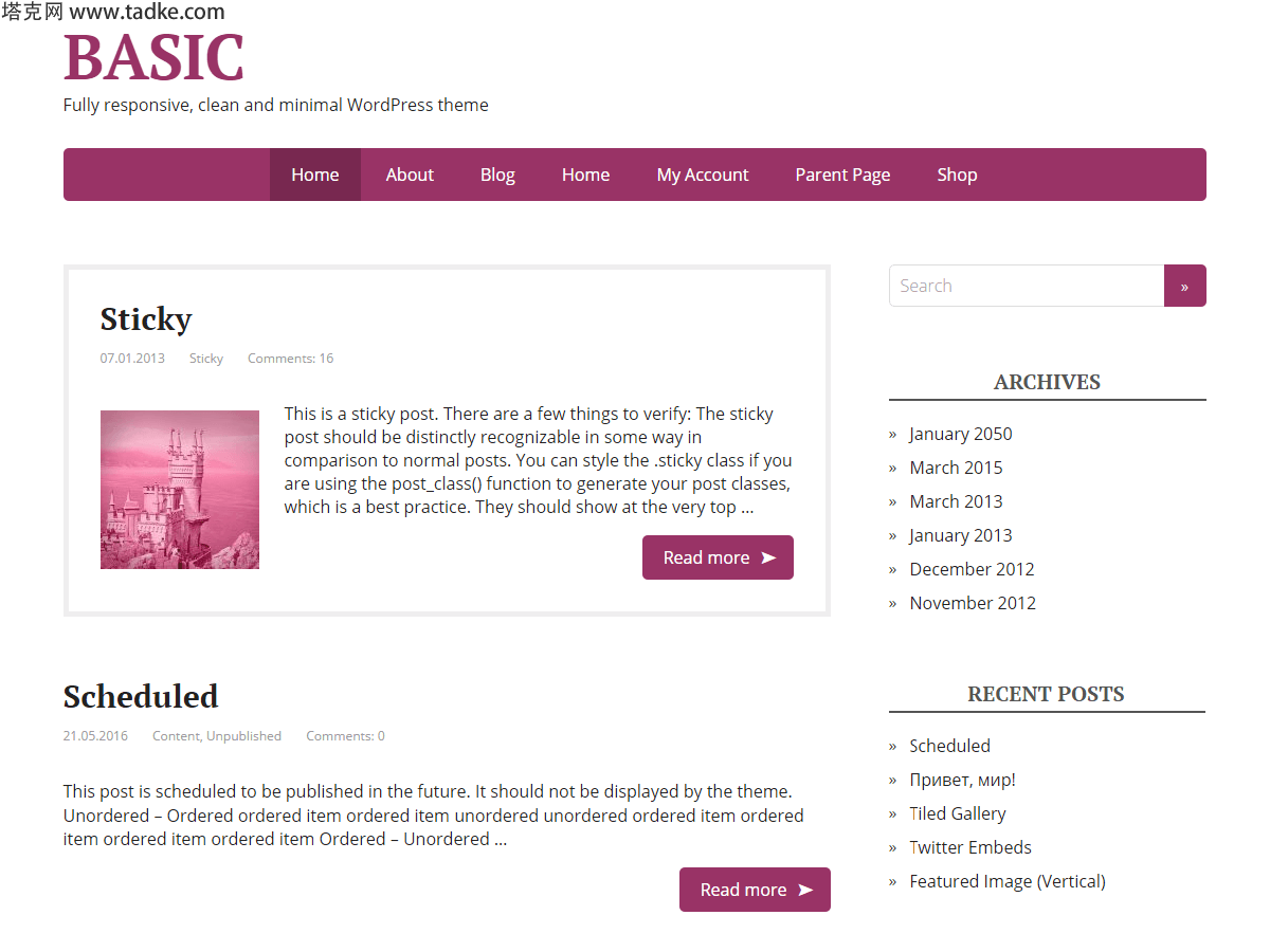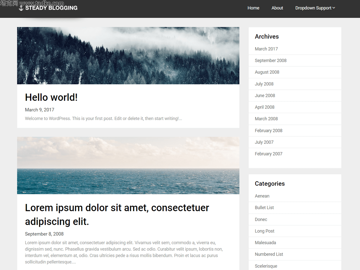 主题预览 点击下载 版本: 1.0.2 主题主页 一个简单的WordPress主题,由wpmagg