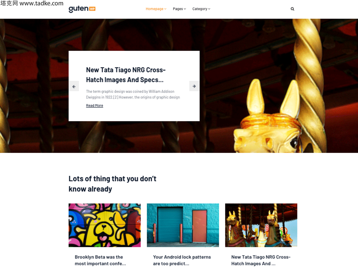 主题预览 点击下载 版本: 1.1.0 GutenWP是一个美丽而优雅的多功能古腾堡兼容的主题,非常适合您的博客网站和杂志。该主题是以Gutenberg为基础构建的,因此您可以轻松使用Gutenberg块和第三方块。无论您是想创建个人,旅游,美食,摄影还是其他任何类型的博客,都可以通过这种高度响应的主题来完善它。该主题带有4个惊人的家居版本,在这个Gutenberg兼容主题中时尚地展示您的内容。超高速主题采用最佳SEO实践编码,非常可定制。使用WP Mega菜单构建菜单,获得惊人的导航系统。这个Gutenberg兼容的主题内部有WP Page Builder,因此您可以轻松地为您的页面获得许多样式选项。该主题适用于所有主要插件,并具有出色的排版。用古腾堡创建一个博客和杂志网站从未如此简单。