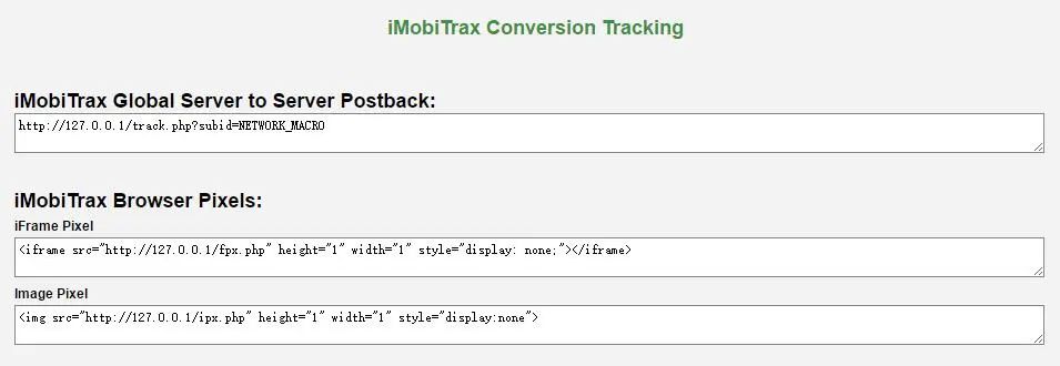 http://imobitrax.com/click.php?c=1&key=xxx&c1=[WEBSITEID]&c2=[CATEGORYNAME]&c3=[ISPNAME]&c4=[COUNTRY]&c5=[BID]&c6=[OSNAME]&c7=[BROWSERNAME]&c8=[DEVICENAME]&c9=[ADBLOCK]