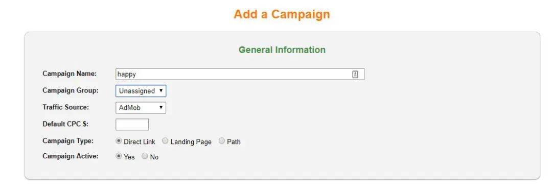 d.建立一个Campaign,填上offer链接,LP路径做好各项设置。