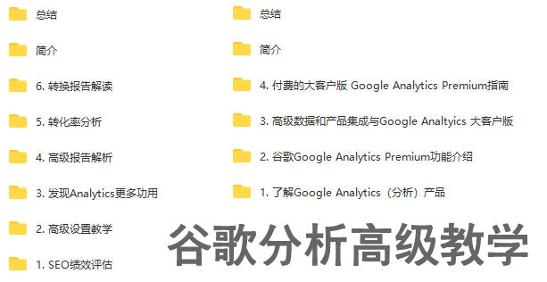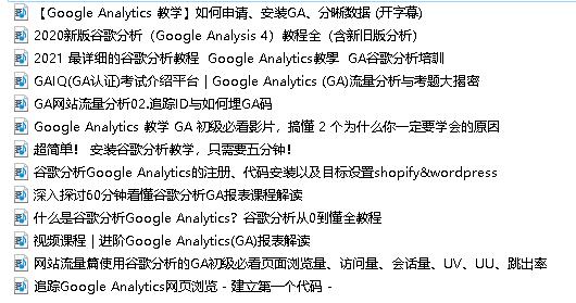 2021最新的谷歌分析视频课程,并非所有都是2021,部分为2020旧的。课程有新有旧,更多参考学习价值。