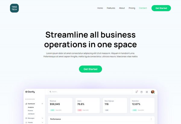 Tanz Tech模板的主要功能年轻的设计是多种业务类型的理想选择明亮、温馨的颜色和排版吸引人的页面功能,可以轻松定制基本的补充页面已经构建与领先的页面生成器完全兼容