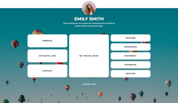 Linktree的一个很好的替代品,你可以很容易地设置。随着您对旅行者的影响力的增长,您可以实现更多的设计选项和高级功能。