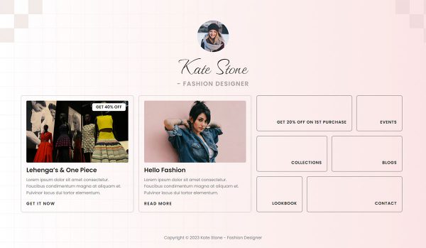 bio模板中的设计者链接提供了与Linktree相同的优势,但具有更多的设计自由度。这是一个完全响应的模板,有更多的机会自定义它,并使用您最喜欢的页面生成器使它成为您自己的。