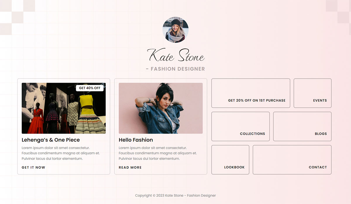 生物模板中的设计师链接是一个登陆页面,在这里你可以分享你的网站、社交网站和任何你喜欢的地方的链接。它们被广泛用于通过一个简单的、吸引人的页面来帮助提升你自己和你的技能。