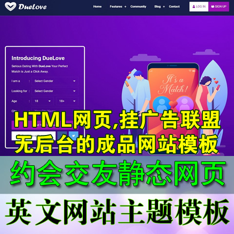 英文HTML5静态网页模板 国外交友引导网站 lead国外联盟平台 自定义无后台主题