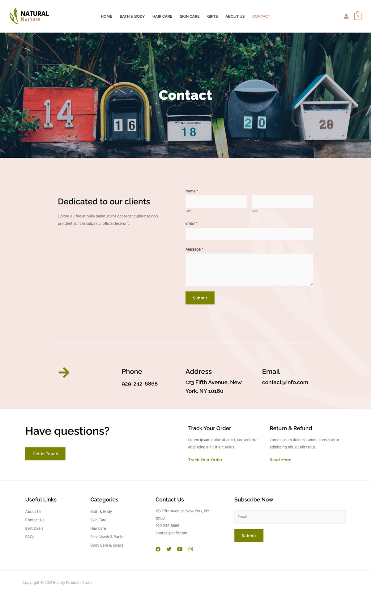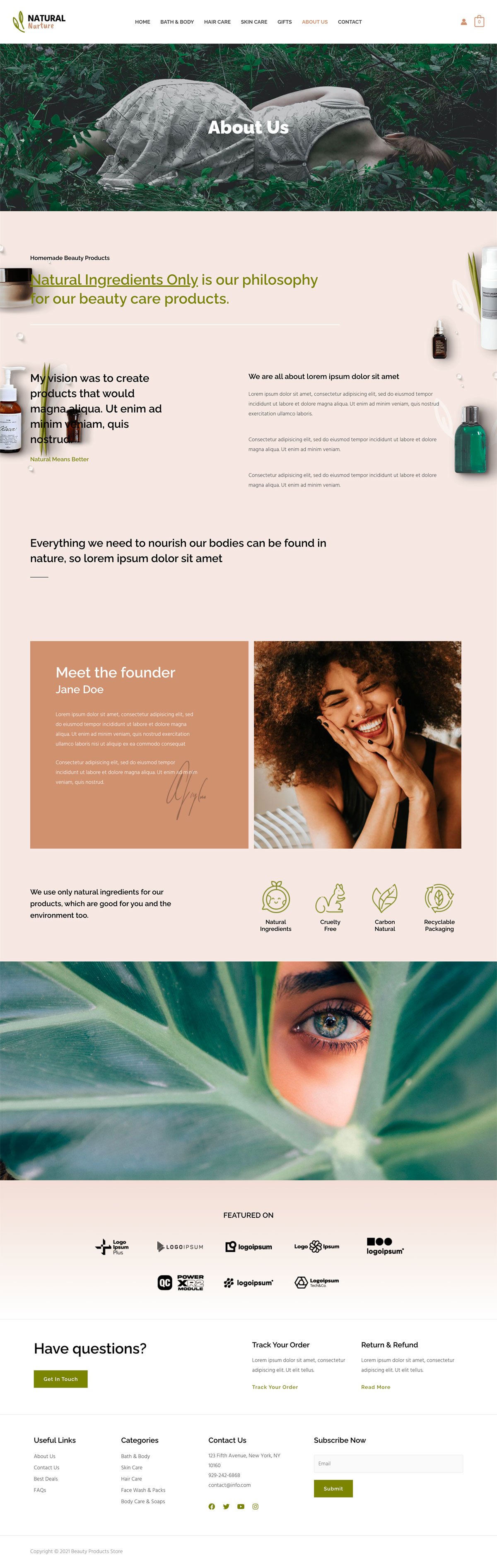由于柔和的颜色和高质量的页眉,美容产品商店模板是一个非常受欢迎的设计。这是一个浅色的设计,有阴影背景、特殊的图像和无边界的内容区域,提供了一种非常现代的感觉。