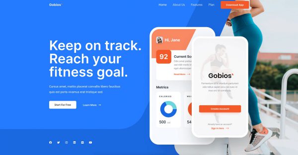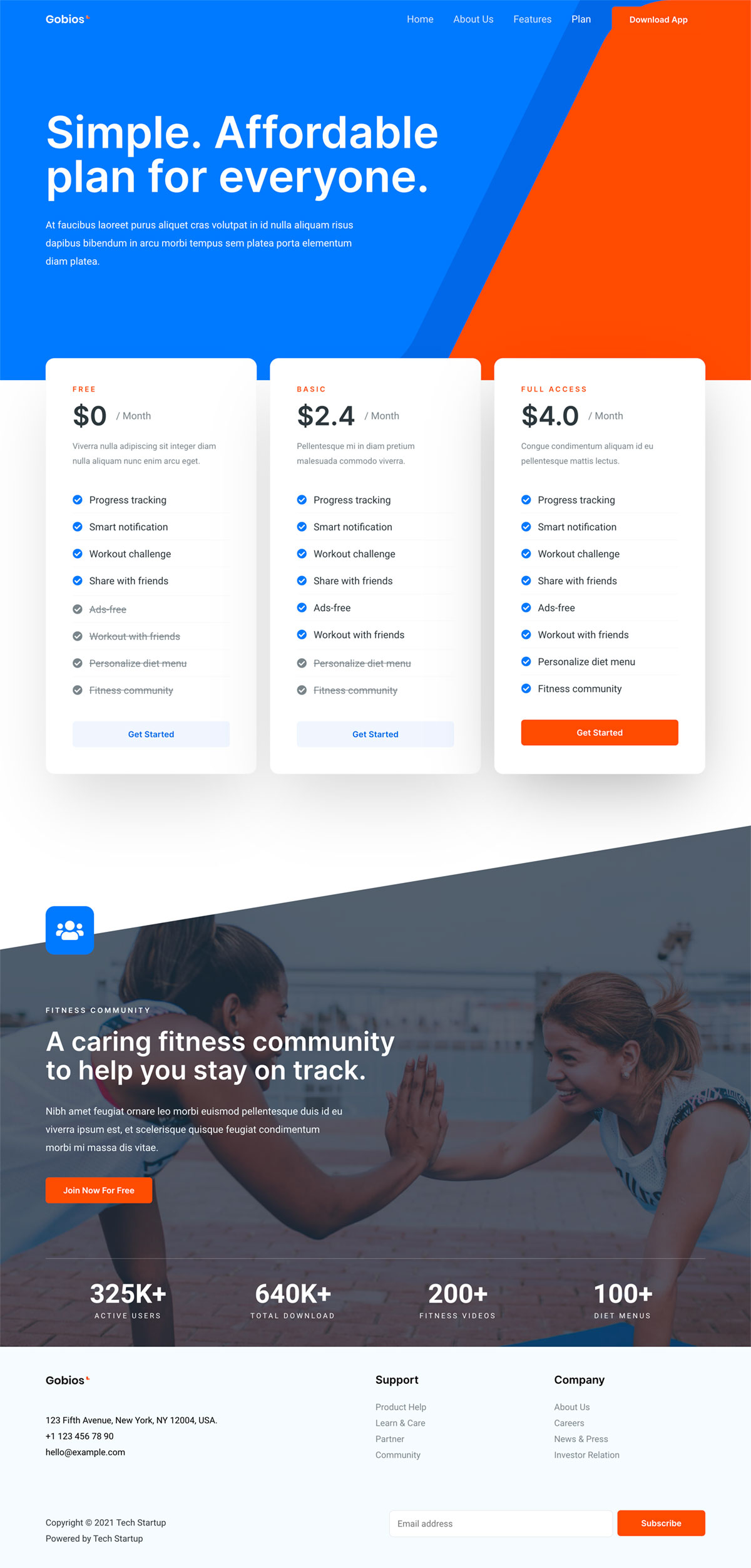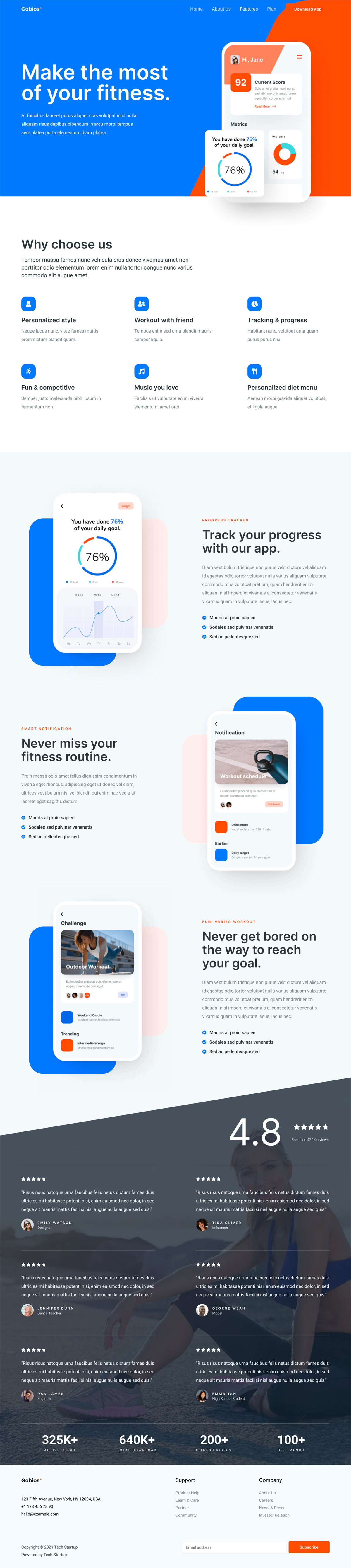 技术创业模板是一个平面的现代设计,具有明亮的颜色、粗体和大量的空白。这是一个很棒的布局,全屏标题显示你的摊位,一个简单的导航区,一个明亮的下载按钮。