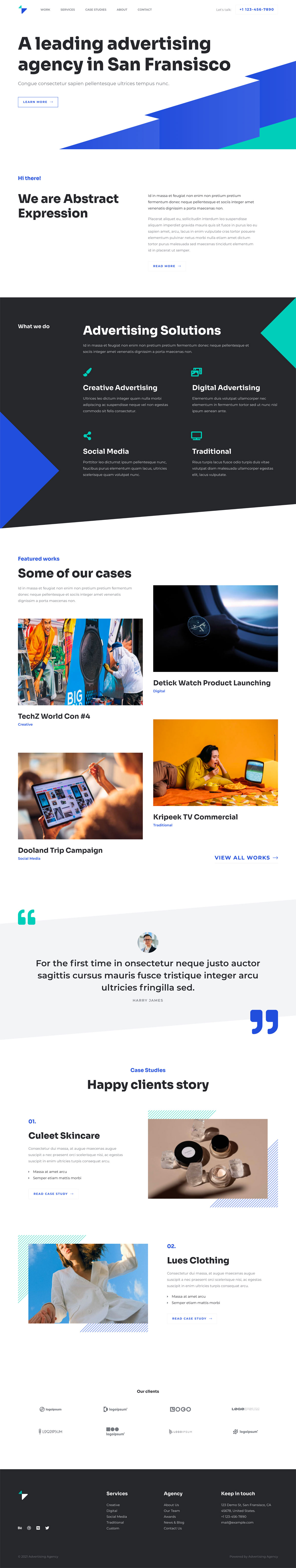 想成为广告业的下一件大事吗?使用我们的广告代理模板,让您的创意源源不断。凭借其简洁的布局和创造性设计的模板,该代理网站模板将帮助您脱颖而出。