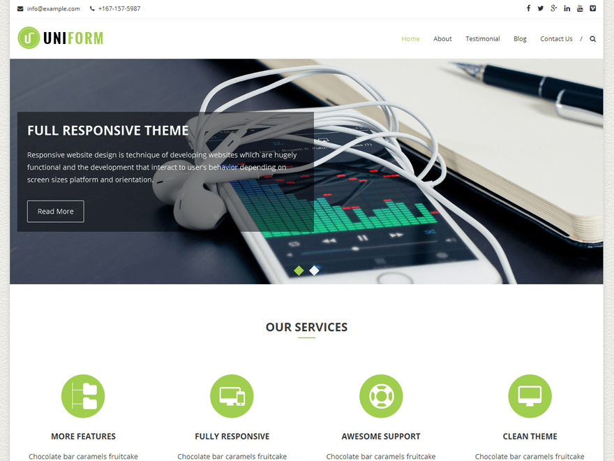 主题预览 点击下载 版本: 1.3.4 主题主页 Uniform是一个干净,简单的商业主题,完全响应,包含大多数使用的功能,有助于轻松快速地设置您的网站。宽度和盒装布局,特色滑块,特色帖子,服务布局,推荐布局,博客布局,社交媒体集成,号召性用语和许多其他页面布局。与大多数使用的WP插件的最高级别的兼容性。通过电子邮件,支持论坛提供大量客户支持。在这里查看完整的演示:http://demo.mysterythemes.com/uniform/ |支持:https://mysterythemes.com/support/forum/themes/free-themes/