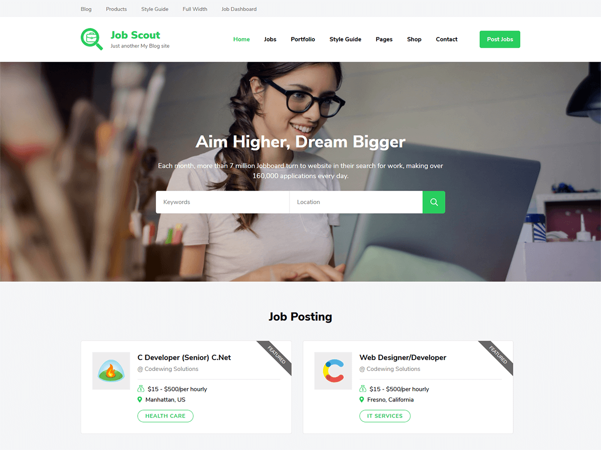 主题预览 点击下载 版本: 1.0.0 主题主页 JobScout免费WordPress主题是一个完整的解决方案,用于在线为招聘人员,职业介绍所和人力资源公司创建网站和发布工作。您可以使用此主题创建一个完全响应和专业的JobScout网站,而无需编写任何代码。该主题采用吸引人且引人入胜的布局,可帮助您保持访问者在网站上的活动。此主题针对速度进行了优化,可帮助您的网站在眨眼之间加载,并为您的访问者提供出色的用户体验。此外,它是使用SEO优化代码开发的,并且准备好了Schema.org标记,这提高了您的网站在搜索引擎结果中的排名。此外,它是跨浏览器兼容的,已准备好翻译并支持RTL脚本。此外,它还由超级友好且经验丰富的支持团队提供支持,帮助您在使用我们的主题时解决您的问题和疑问。查看https://demo.raratheme.com/jobscout/上的演示文档,https://raratheme.com/documentation/jobscout/上的文档,并通过https://raratheme.com/support-forum/获取支持。