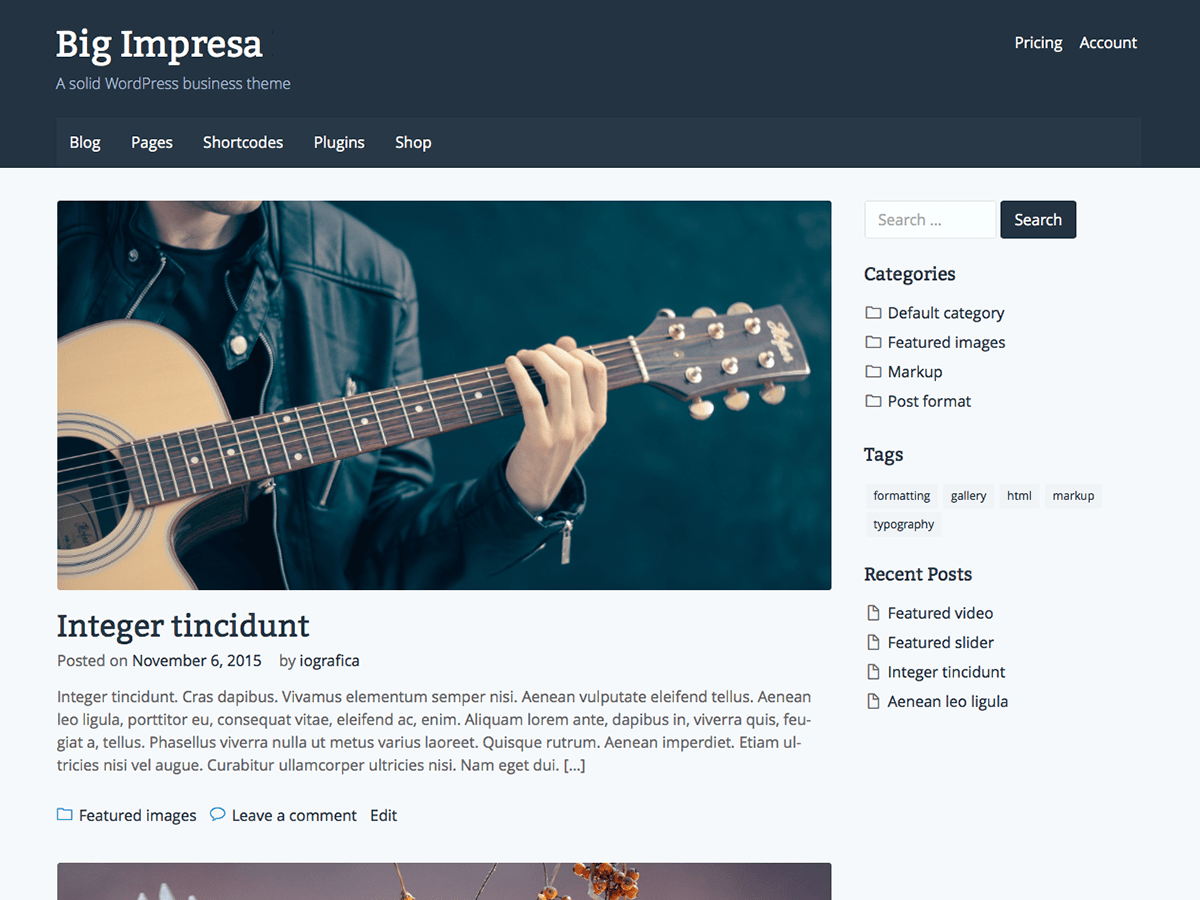 主题预览 点击下载 版本: 1.35 主题主页 选择是一个大胆而简约的主题,供希望吸引访问者注意并保留访问者的发布者使用。使用Chosen在手机,平板电脑和台式电脑上以简洁,整洁的方式呈现您的最佳内容。使用Chosen在任何利基市场开设博客,杂志或新闻网站:时尚,商业,游戏,食品,旅游。作为免费主题,您可以根据需要选择多个网站。它甚至可以用于视频,播客和个人简历。现在有了WooCommerce支持,您还可以在您的网站上添加电子商务商店。 Chosen与新的Gutenberg帖子编辑器完全兼容。主题预览现在通过交互式现场演示选择桌面设备,平板电脑和移动设备:https://www.competethemes.com/demos/?theme = chosen