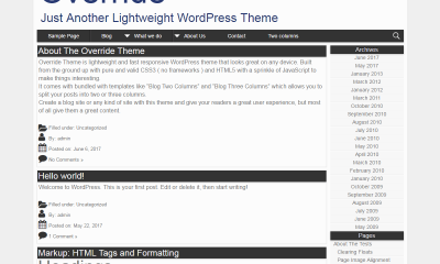 主题预览 点击下载 版本: 1.2.2.1 WordPress的覆盖主题复杂,轻巧和适应性骨架主题。使用自定义菜单,标题图片和背景制作您的图片 – 然后进一步添加您的站点地图,并通过自定义模板将您的帖子拆分为两列或三列。 Override配备了一个小部件支持丰富(左侧边栏,右侧边栏,四个页脚区域),支持特色图像(作为帖子,页面和“粘性”帖子上的大型自定义标题图像)。