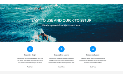 主题预览 点击下载 版本: 1.3.5 主题主页 使用它来启动您的商业网站,博客或投资组合。使用SiteOrigin的拖放页面构建器插件创建详细的布局,而无需编写一行代码。使用大胆的全宽智能滑块启动您的页面,让用户使用粘性菜单。快速,响应迅速,SEO优化并得到专业级支持的支持,Ultra已为您的下一个项目做好准备。如需帮助,请查看我们的主题文档(http://purothemes.com/documentation/)或在我们的支持论坛(https://purothemes.com/support/)上提出问题。