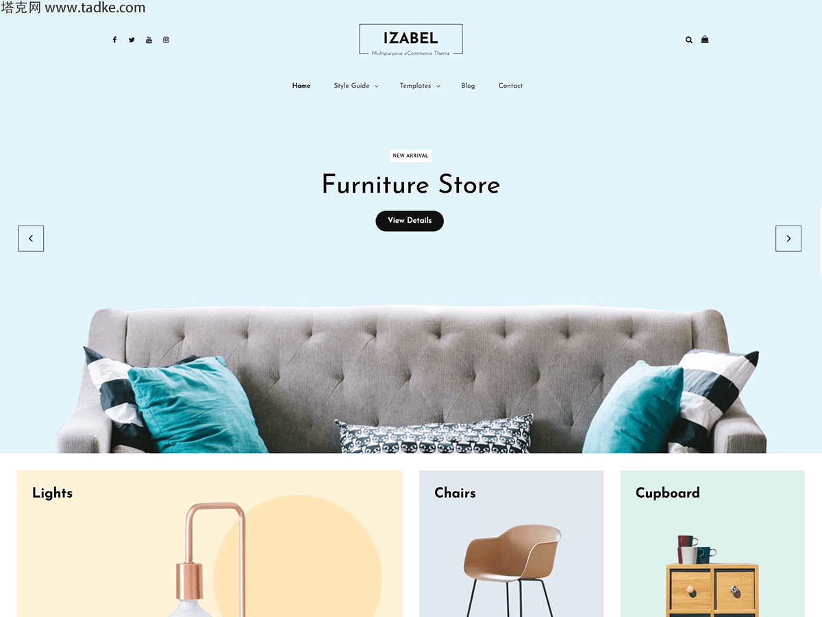 主题预览 点击下载 版本: 1.0 主题主页 Izabel是电子商务WordPress主题,像素完美的设计和广泛的功能,以创建自己的专业和独特的在线商店。主题简洁明了,提供高度可定制的惊人功能。 Izabel建立了响应;您的在线商店在所有设备上看起来都非常漂亮。您必须先安装并激活WooCommerce插件才能使用主题。与WooCommerce一起,Izabel提供的功能对于将您的电子商务网站置于聚光灯下并吸引更多客户到您的业务至关重要。 Izabel已添加诸如收集,精选内容,英雄内容选项,投资组合,热门产品,服务,推荐等功能。 Izabel优雅,整洁,简约的设计立即促进销售。没有不必要的干扰,Izabel确保您的访客能够看到您提供的一切。如果您需要高级功能,请查看主题的高级版本。如有任何技术问题,请在我们的支持论坛https://catchthemes.com/support/上发布。有关详细信息,请查看主题说明,网址为https://catchthemes.com/themes/izabel/#theme-instructions和Demo at https://catchthemes.com/demo/izabel/