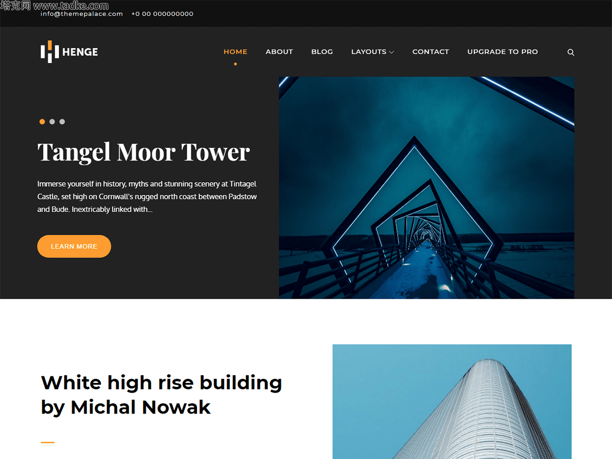 主题预览 点击下载 这是附带子模板主题建筑。 版本: 1.0.2 主题主页 Henge,具有美观和现代的外观设计,是一种多功能儿童WordPress主题建筑。您可以在以下网址查看主题演示:https://themepalacedemo.com/henge