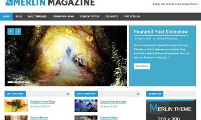 主题预览 点击下载 版本: 1.4 WordPress版本: 4.7或更高 主题主页 Merlin是一款设计精美的杂志WordPress主题,具有响应式布局。主题配有华丽的Post Slider,Magazine主页模板和Header Widget区域。可以在定制器中轻松配置设置。