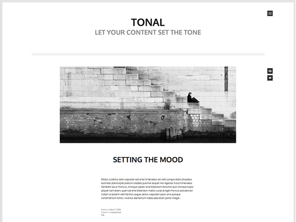 主题预览 点击下载 版本: 1.1.3 主题主页 Tonal从您的内容中获取灵感,最小的风格根据您的背景颜色而变化。此主题包含大型精选图片,全角视频和在任何设备上都很棒的帖子格式。