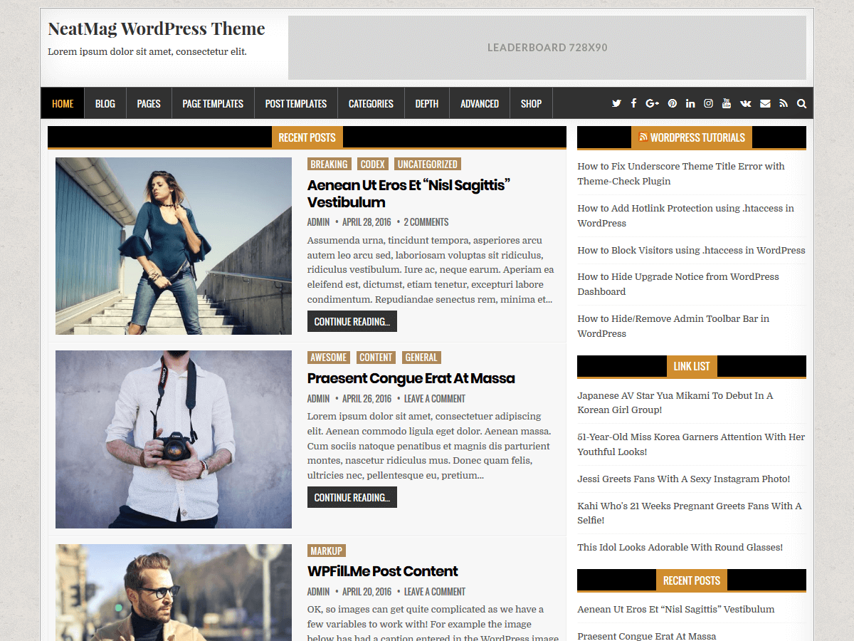 主题预览 点击下载 版本: 1.0.0 主题主页 NeatMag是一个优雅,灵活,完全响应,2列,杂志博客主题的WordPress。它有主题选项来自定义主题的各个方面,并有漂亮的帖子摘要,全宽度自定义帖子/页面模板,粘性菜单和侧边栏,标题小部件,右侧边栏,4列页脚,社交按钮,滚动到顶部按钮和更多。使用NeatMag PRO版本,您可以获得许多颜色和字体选项,8种不同的帖子样式,9个特色帖子小部件,标签小部件和更多小部件,布局选项,更多自定义页面/帖子模板,标题布局,社交/共享按钮,内置联系表格,相关帖子和更多功能。免费版演示:https://themesdna.com/demo/neatmag/