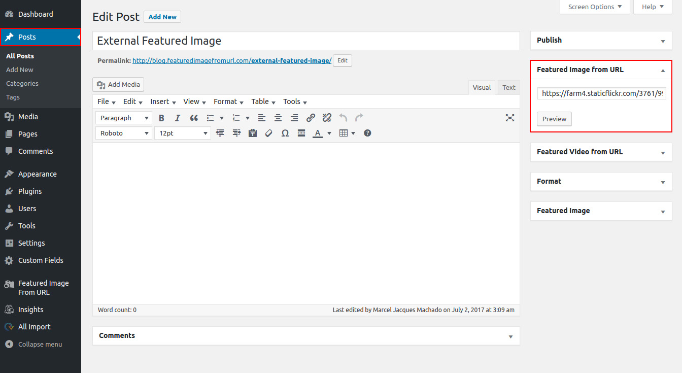 点击下载 来自URL的特色图片 插件描述 特点: 来自URL插件的特色图片允许您使用外部图片作为您的帖子,页面和自定义帖子类型的特色图片,例如WooCommerce产品; 非常适合外部帖子,该插件可以将第一张图片用作精选图片; 当您访问管理菜单中的帖子/页面/产品/类别表时,精选图像将显示在新列中; 如果您的主题没有在帖子/页面/产品上显示特色图片,则可以在内容的开头自动包含该图片; 但如果您的主题在帖子/页面/产品上显示精选图片,则可以选择删除精选图片;具有延迟加载功能的 图像/视频将不会加载,直到用户滚动到它们,使家庭/商店页面加载更快; 所有包含的内容仍然具有社交标签,以便于在社交网络上共享; 与WP All Import插件兼容; 一些非标准图片网址(例如Instagram和Google云端硬盘)也可以使用; 您可以定义在没有特色图像时显示的默认外部特征图像; 您可以禁用产品灯箱和缩放; 您可以将自己的CSS样式或18种悬停效果应用于图像; 支持WP REST API(高级功能); 允许安排cron事件以将所有第一图像设置为特征图像。所以它可以每小时,每天等运行。(高级功能; 为外部图像创建的所有功能都可用于来自YouTube,Vimeo,Cloudinary和T的外部视频umblr。对于YouTube视频,可以设置播放器参数。您可以为每种屏幕类型定义视频大小(高级功能); 您可以使用图像滑块作为“特色图像”(高级功能); 您可以将视频缩略图或视频用作“精选图片”(高级功能); 您可以使用短代码提供的任何内容作为“特色图片”(高级BETA功能); 自动设置产品类别图像,每个图像从该类别的外部产品图像中选择(高级功能); 也可以在WooCommerce产品库,产品类别和可变产品中使用外部图像(高级功能); 您可以使用Flickr的外部缩略图使您的网站速度提高94%(高级功能); 它可以将家庭/商店中的所有外部特色图像裁剪为相同的尺寸(高级功能); 自动播放/暂停鼠标上/下的视频(高级功能); 官方网站 实时预览(博客) 直播预览(商店) 屏幕截图 只需用图像地址填写URL字段,然后单击预览按钮。 如果URL正确,将显示图像。 高级功能:来自网址的精选视频。 Premium功能:来自URL的精选滑块。 特色图像列。 家中的外部特色媒体。 帖子上的外部特色图片(可以是页面或自定义帖子类型)。 高级功能:来自网址的精选视频。 高级功能:来自URL的精选滑块。 许多设置可根据您的需要调整插件。 高级功能:来自URL的图库。 高级功能:来自URL的视频库。 WooCommerce商店的外部特色媒体。 购物车上的外部特色媒体。 高级功能:来自URL的图库。 灯箱上的外部特色图像。 灯箱缩放。 高级功能:来自URL的视频库。 高级功能:Lightbox上的外部精选视频。 灯箱缩放。 […]