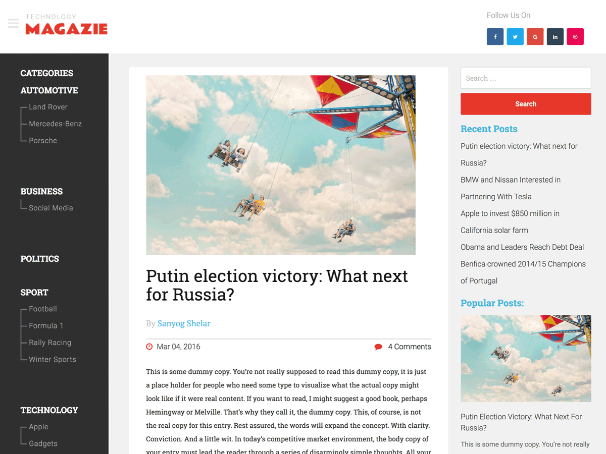 主题预览 点击下载 版本: 1.0.1 主题主页 Conary是您的杂志或新闻的主题。该主题在任何屏幕尺寸和设备上都具有完全响应性。