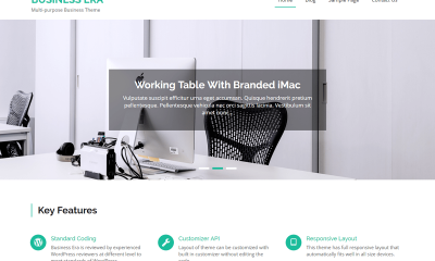 主题预览 点击下载 版本: 1.2.1 主题主页 Business Era是一个干净,简单和专业的商业主题,具有吸引人的元素和丰富的商业和企业网站功能。它非常适合商业,企业,信息,代理,旅游,设计,艺术,个人和任何其他创意网站和博客。它在首页上有多个部分,包括favicon,徽标,小部件,多个导航,地址栏,营业时间,社交菜单和定制器,可轻松自定义主题。您只需单击一下即可更改主题的主要颜色。除了这个主题,您还可以使用颜色选择器更改网站标题,面包屑,页脚等部分的颜色。