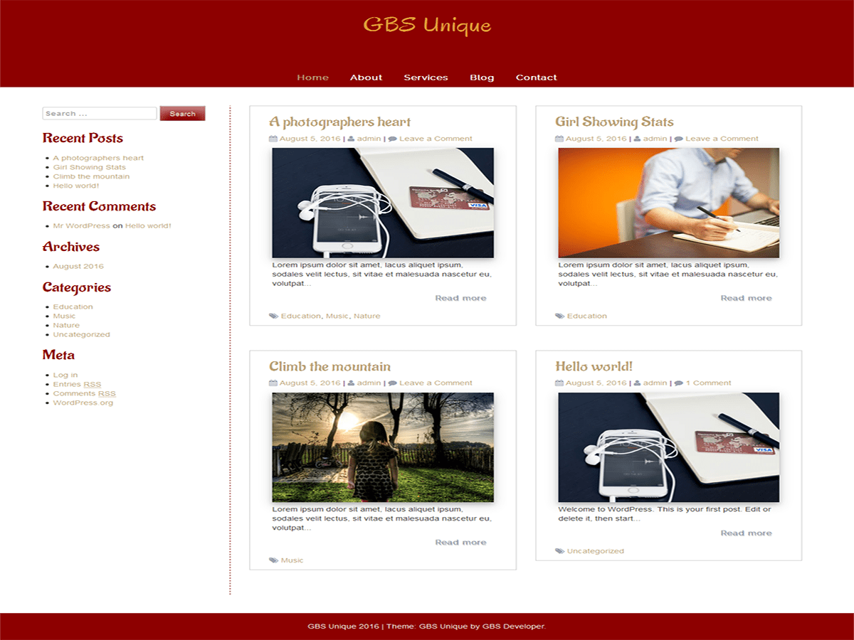 主题预览 点击下载 版本: 3.1.3 GBS Unique是一个多用途的WordPress主题。它太简单,易于定制的wordpress主题。它可以用于企业,目录,手册和其他各种网站
