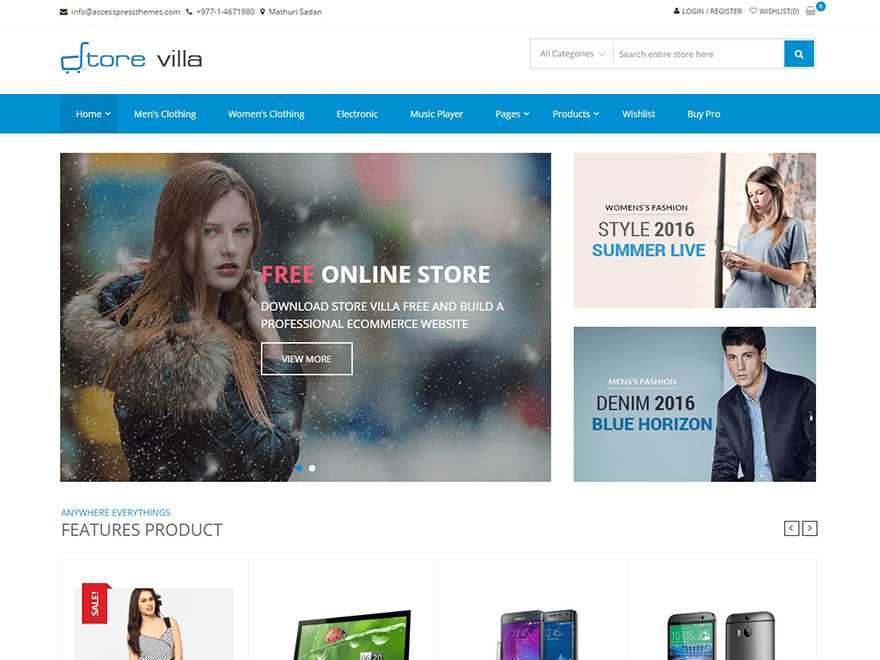 主题预览 点击下载 版本: 1.3.1 主题主页 StoreVilla是一款设计优雅的免费电子商务WordPress主题。它由精彩的WooCommerce插件及其扩展提供支持,让您轻松构建成功的在线商店。它是一个完整的电子商务软件包,具有所有必需的功能和特性。它的诱人和灵活的设计在任何类型的在线商店,如时尚,珠宝,化妆品等,看起来很棒。主题内置酷炫的定制工具 – 您可以根据自己的意愿轻松配置设计,设置和其他元素。它具有无限的滑块选项,后台配置,高级产品搜索,多类别显示布局,4页面布局,组织良好的主页部分等等。这是开始您的任何类型的在线商店的完美主题。此外,该主题还附带10多个自定义小部件 – 增强您的电子商务网站的功能,并为您的客户提供最佳的在线购物体验。所有WooCommerce设置都在主题中启用 – 您可以轻松地在商店中添加任何产品,并以任何方式在任何地方展示它。它是完全响应,翻译准备和SEO友好的主题。使用StoreVilla – 您可以毫不费力地创建一个梦想的在线商店,演示:http://accesspressthemes.com/theme-demos/?theme = storevilla支持论坛:https://accesspressthemes.com/support/forum/themes/free -themes / storevilla /