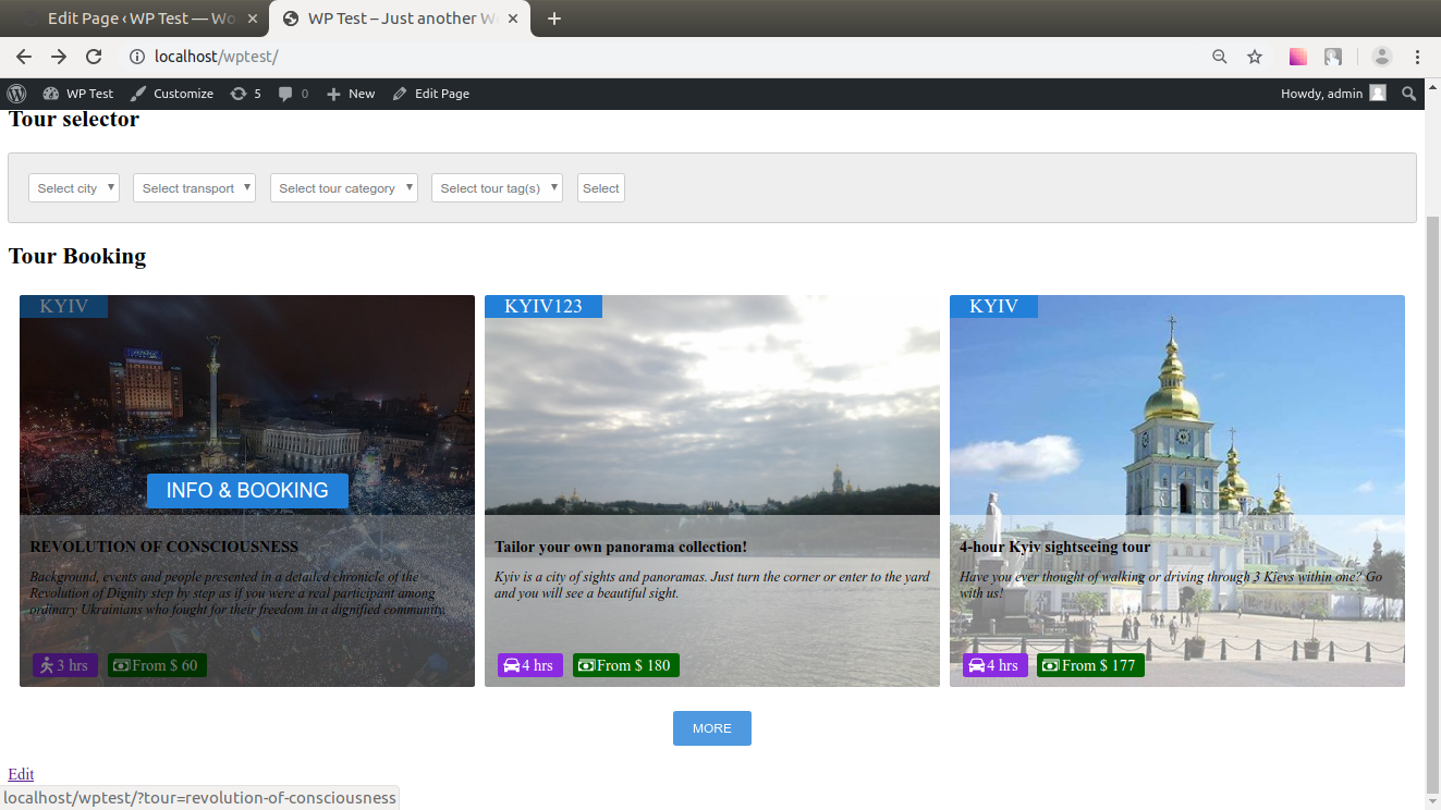 点击下载 旅游预订 插件描述 此插件专为旅行社,私人导游和其他提供预订机会的公司而设计为他们的客户旅游 – 酒店和其他预订公司。 每个游览都是具有以下属性的帖子: – 名称 – 注释 – 描述 – 初始图片 – 以小时为单位的游览持续时间 – 费用 – 运输类型(行人,汽车/汽车,船/船,自行车等) – 城市 – 起点 – 终点 – 订单(数量;较小)它是,游览距离列表的顶部越近;默认情况下,游览按创建日期排列) 此外,游览与其他WordPress帖子一样,可以有类别和标签。 该插件有一个过滤器(小部件),允许您按城市,交通,标签和类别选择游览。它还有一个自动短代码生成器,允许您放置在这些参数选择的页面上。 屏幕截图 旅游列表。 参观预订表格。 插件的管理页面:常规设置 插件的管理页面:颜色设置 插件的管理页面:消息的设置 短代码生成器 安装 上传 tour-booking.php 到 / wp-content / plugins / directory通过WordPress中的“插件”菜单激活插件