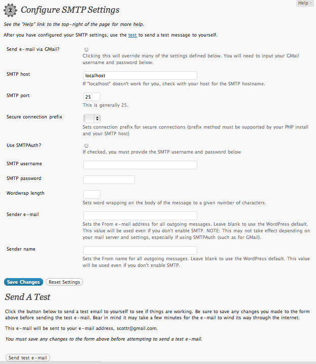 点击下载 配置SMTP 插件描述 在WordPress中配置SMTP邮件,包括支持通过SSL / TLS发送电子邮件(如Gmail帐户)。 此插件是wpPHPMailer插件的重命名,重写和更新版本。 使用此插件自定义WordPress默认使用的SMTP邮件系统,以处理传出电子邮件。它使您能够指定: SMTP主机名SMS端口号如果应使用SMTPAuth(身份验证).SMTP usernameSMTP密码如果需要在ssl或tls上发生SMTP连接 此外,您可以改为表示您希望使用GMail处理外发电子邮件,在这种情况下,上述设置会自动配置为适用于GMail的值,但您需要指定您的GMail电子邮件(包括“@ gmail.com”)和密码。 无论是否启用SMTP,插件都能让您为所有外发电子邮件定义“发件人:”字段的名称和电子邮件。 还提供了一个简单的测试按钮,允许您向自己发送测试电子邮件,以检查是否为您的博客正确配置了发送电子邮件。 链接:插件主页 | 作者主页 屏幕截图 插件管理员设置页面的屏幕截图。 安装 在 / wp-content / plugins / 目录中解压缩 configure-smtp.zip (或通过内置的WordPress安装)插件安装程序)通过WordPress中的“插件”管理菜单激活插件点击其旁边的插件的设置链接取消激活链接(仍在插件页面上),或单击设置 – > SMTP 链接,转到插件的管理设置页面。 (可选)使用内置测试查看您的博客是否可以正确发送电子邮件。 FAQ 安装说明Unzip configure-smtp.zip 位于 / wp-content / plugins / 目录内(或通过内置的WordPress插件安装程序安装)激活插件通过WordPress中的“插件”管理菜单点击其停用链接旁边的插件的设置链接(仍然在插件页面上),或者单击设置 – > SMTP 链接,转到插件的管理设置页面。 (可选)自定义设置(如果默认设置对您的情况无效,则进行配置)。(可选)使用内置测试查看您的博客是否可以正确发送电子邮件。我已经能够接收电子邮件我的博客发送的邮件,我对这个插件有什么用途或需要吗? 最有可能,没有。除非您首选通过其他SMTP服务器(例如GMail)发送邮件,否则不会这样做。 如何找到我的SMTP主机,和/或我是否需要使用SMTPAuth以及我的用户名和密码是什么? 查看本地电子邮件程序的设置。很可能配置为使用传出SMTP服务器。否则,请联系您的主人或更熟悉您情况的人。 在为某些设置尝试了不同的值后,我使用测试按钮发送了一些测试电子邮件;我怎么知道哪一个有效? 如果您的设置有效,您应该在与WordPress博客相关的电子邮件地址收到测试电子邮件。ser帐户。该电子邮件包含发送电子邮件时插件向您报告的时间戳。如果您正在尝试各种设置值,请务必记录您的设置以及使用这些设置发送时的时间戳。 为什么我在尝试发送测试邮件时收到此错误:`SMTP错误:无法连接到SMTP主机。? […]