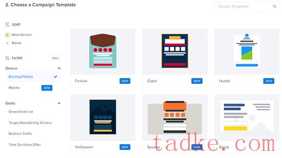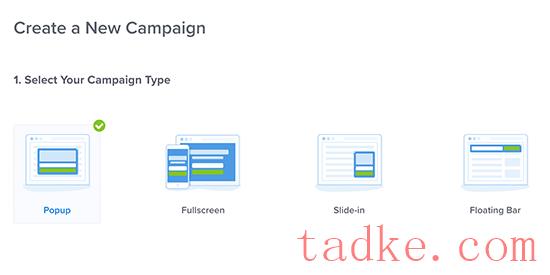 现在您将被要求为您的广告选择一个标题。之后,您将被重定向到optinmonster的活动设计师。