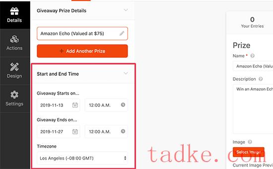 您还需要检查‘Timezone’下拉。默认情况下,RafflePress在你的WordPress设置中使用时区,但你可以将其更改为任何你想要的。