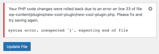一旦你完成添加代码,只需点击屏幕底部的’ Update File ‘按钮。