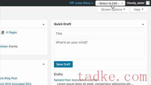 话虽如此,让我们看看如何在WordPress管理区添加一个跳转菜单,以便更快地编辑。