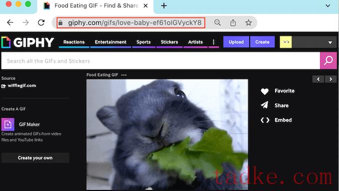 在Giphy网站的新标签头。然后你可以找到你想使用的GIF。