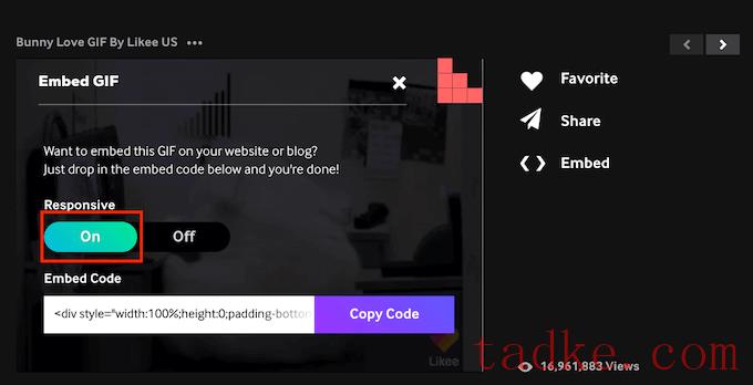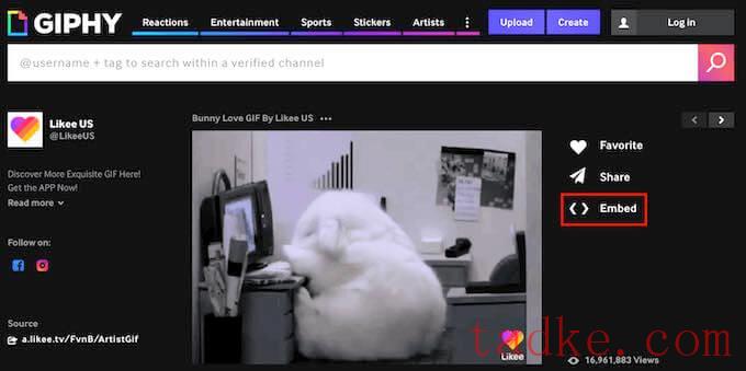 Giphy现在会显示这个GIF的嵌入代码。