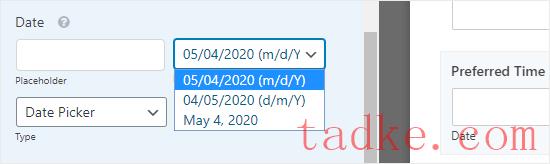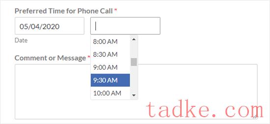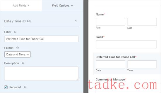 您可以更改字段的标签,默认为‘Date / Time’我们将使用’首选打电话时间’为了我们的领域。