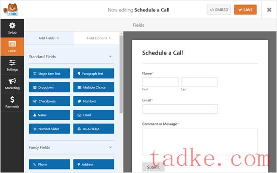 您也可以添加任何其他您想使用的新字段。点击‘添加字段’TAB,然后将该字段拖放到您的字段上。要编辑字段,只需单击它。