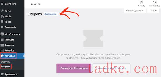 只需进入Marketing»coupon ,然后点击‘Add New.’