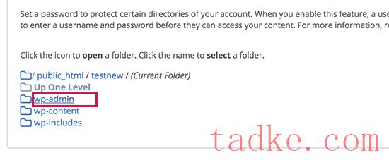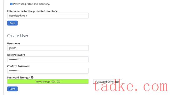 CPanel现在将要求您提供受限文件夹的名称、用户名和密码。