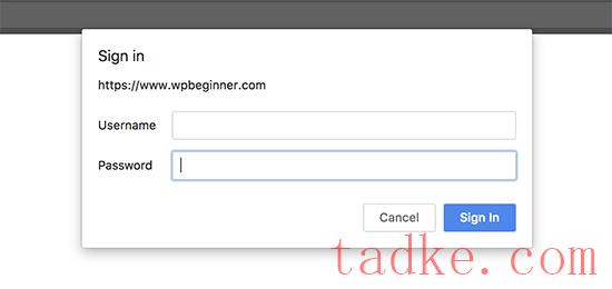 当你访问你的WordPress管理区域时,你会看到一个新的登录提示。