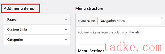 选择菜单后,您将看到一个“添加菜单项”部分。