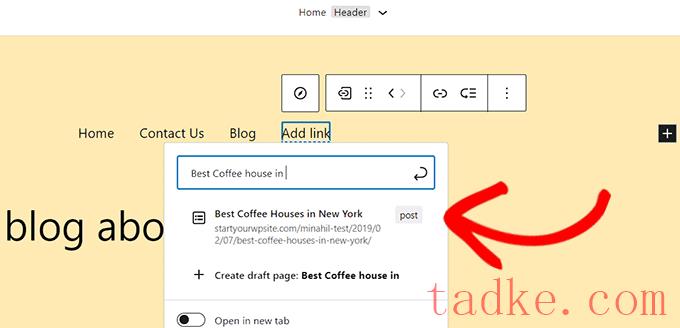 在那之后,你可以简单地搜索你想要添加到导航菜单中的帖子。