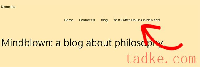 现在,您可以访问您的网站,看到您的帖子出现在您网站的导航菜单中。