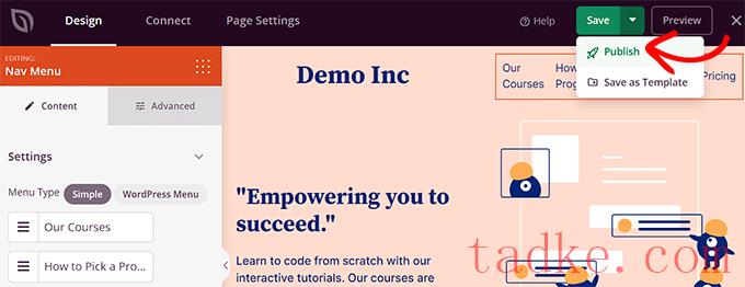完成后,别忘了点击“保存”,然后点击位于编辑器右上角的“发布”按钮。