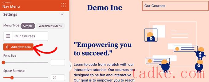 您可以通过点击“Add New Item”按钮添加更多菜单项。