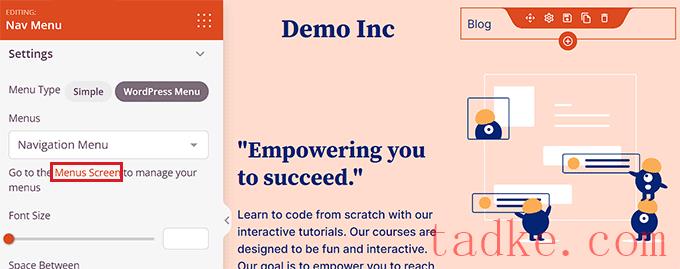之后,点击“菜单”部分下的“菜单屏幕”链接。